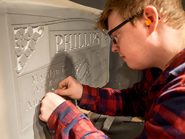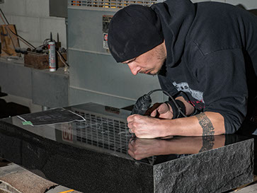 Barry Weber provides commercial photography to represent a businesses focus and strong points. In this set, the focus is on craftsmanship, precision and manufacturing capabilities based on equipment for the granite and monument industry. Using portable speed lights to add in lighting in darker areas of the plant help illuminate the cutting, grinding and polishing equipment, to give them a more specular appearance than available light would provide. Capturing the movement of a blade or the spray of water gives the feel of motion to these images. Perhaps the greatest advantage to having Barry Weber image your commercial facility is his background in equipment and production to showcase the production with a fresh view to bring clients to grasp and embrace a companies capabilities and strengths.