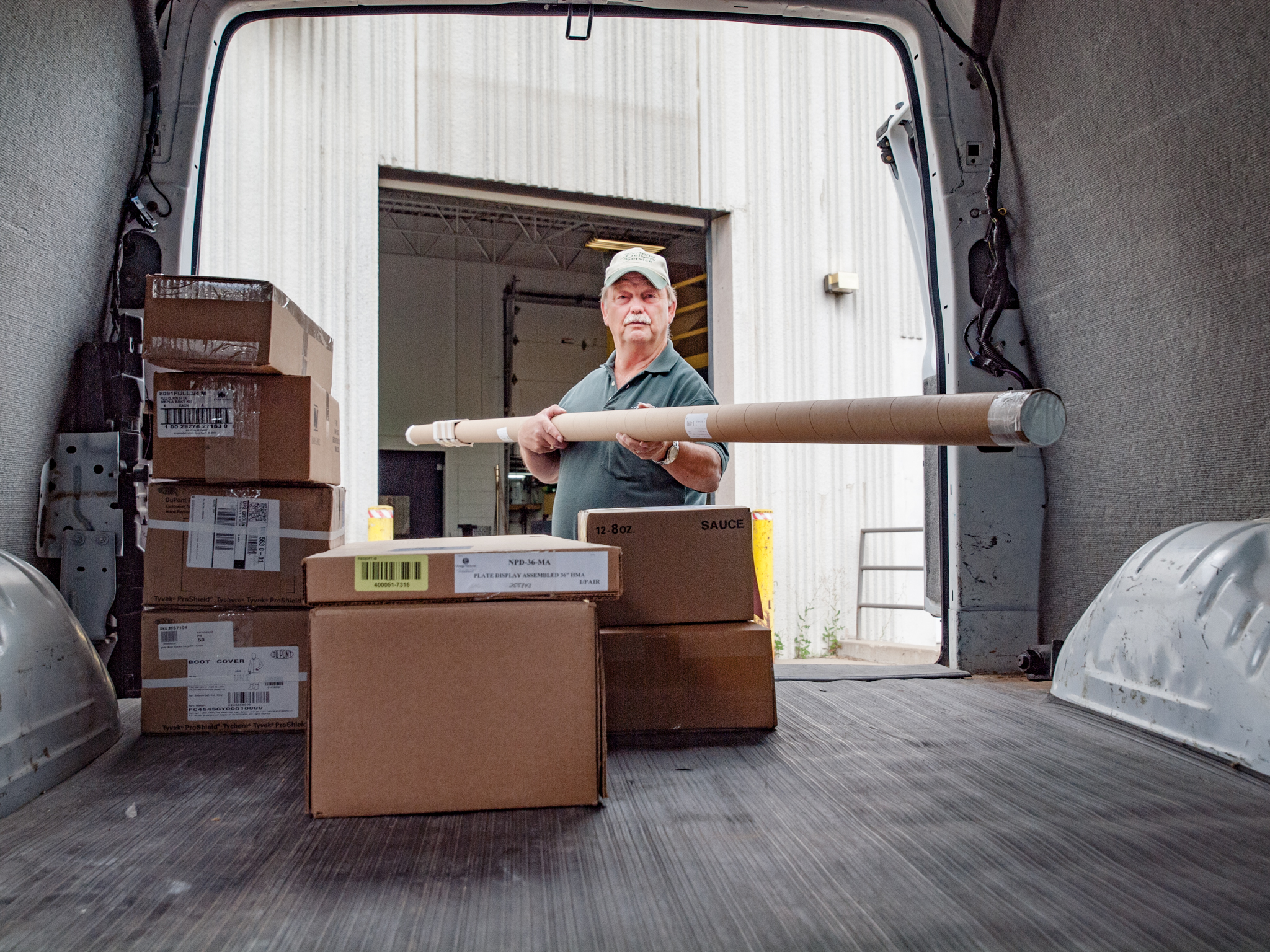 Barry Weber provides commercial photography to represent a businesses focus and strong points. In this set, the focus is on personal attention and care of products to be transported. Individual personal attention that the images show is difficult to convey in just wording. Shooting in real settings of a warehouse loading vans by forklift and hand. The fleet vehicle photographs help show teamwork and deployment of vehicles.